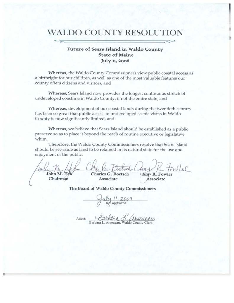 Waldo Commissioner Sears Island Resolution 7-11-06